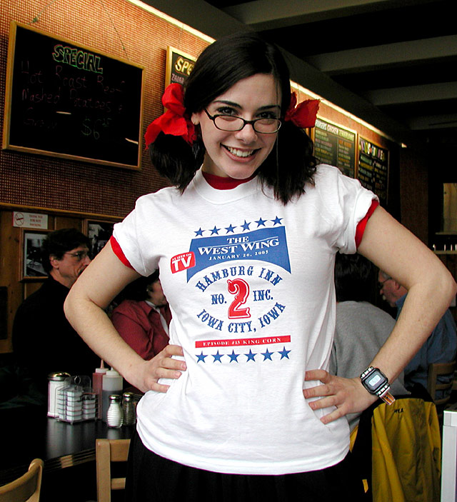 - Although focusing on New Hampshire, Josh and Santos go to Iowa where Josh and Donna (there with the Russell campaign) end up with hotel rooms across from each other. The next morning each has a 5:45 wake up call and each immediately turns on the TV to see the same news story, etc. The rest of each of their days has a similarity although the details are different. Each of three candidates that day (we follow Vinick through the same kinds of things after he has a 5:45 wake up call as well) deals with ethanol and what to tell the Iowa Corn Grower's Expo about this product as each addresses the group at different times this day. Even Russell, whose speech is first, tells Will,